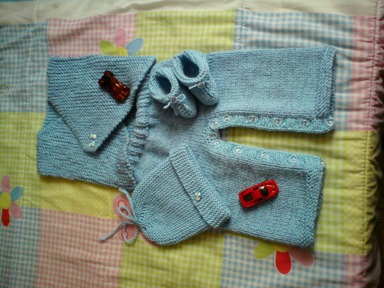 A receita do coletinho e do sapatinho eu fiz pelo blog da Regina, que tem um blog de tricô maravilhosooo.